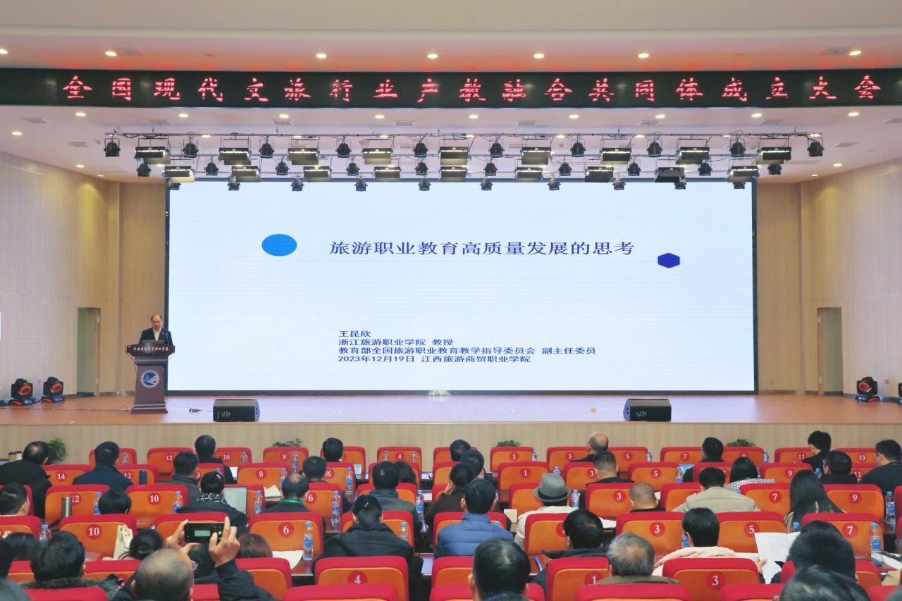 12月19日,在教育部、江西省教育厅、省文化和旅游厅、省供销合作社联合社的大力支持和精心指导下,由江西长天集团有限公司、江西科技师范大学、江西旅游商贸职业学院联合发起的全国现代文旅行业产教融合共同体成立大会在江西旅游商贸职业学院产教融合大楼报告厅举行。