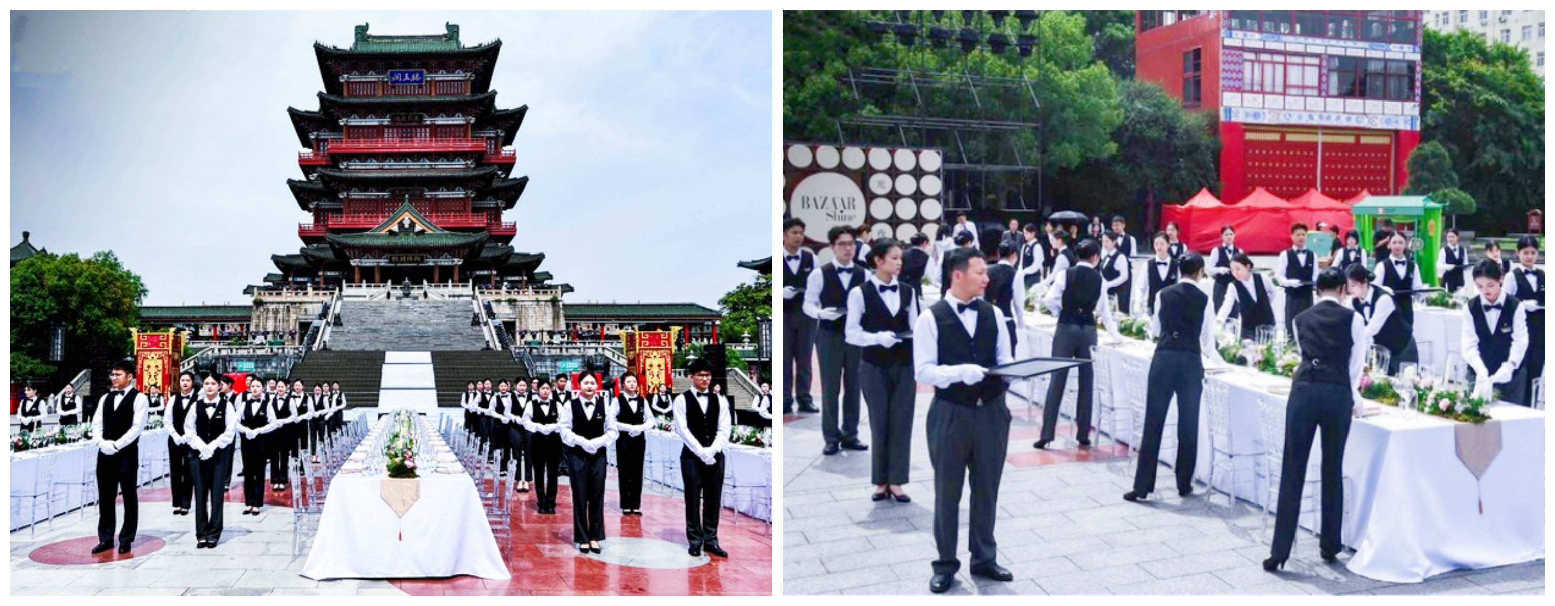 2025年5月7日晚,南昌国际时尚周开幕式暨Bazaar Shine“鎏光之夜”在滕王阁璀璨启幕。共同体牵头单位江西旅游商贸职业学院选派20名酒店管理专业学生赴成员单位南昌瑞颐大酒店参与晚宴服务,以扎实技能为国际级活动提供高品质保障。